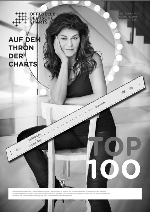Das Andrea Berg Album „Seelenbeben“ schießt auf Platz 1 der Charts. Mit einem Marktanteil von fast 35% war in der letzten Woche jedes dritte Album das in Deutschland über die Ladentheken ging eine „Seelenbeben“ LP. Syndicate ist mit seinen Produktionen und Kompositionen wieder mit dabei.